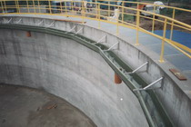 Koryta składają się ze zlaminowanych ze sobą odcinków od 1.5 do 3m. Długość odcinków zależy od średnicy zbiornika. Dla zbiorników prostokątnych ograniczeniem długości koryt jest transport oraz ich montaż. Część koryt, w zależności od projektu, posiada zamocowane w dnie rury odpływowe. Koryta skrajne posiadają ścianki zamykające. Koryta montowane są do ścian zbiornika za pomocą wieszaków, wykonywanych z ceownika stalowego. W poziomej części ceownika wyfrezowane są "fasolki", pozwalające na regulację odległości koryta od ściany zbiornika. Koryta są podwieszane za pomocą śrub M 10 i mocowane na żądanej wysokości nakrętkami, w celu zapewnienia spływu ścieku do rur odpływowych. Po umocowaniu koryt należy wypoziomować rurki przelewowe i grzebienie.